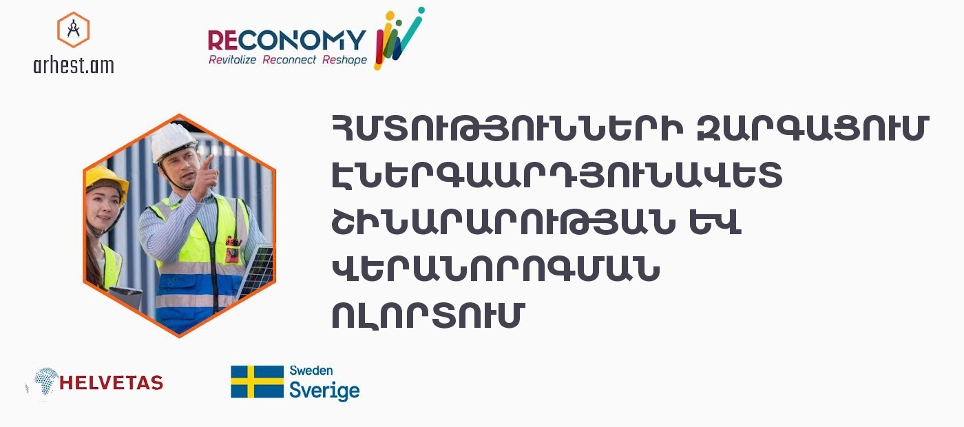 In the scope of the RECONOMY programme, Arhest.am is implementing the “Skill development in energy-efficient construction and renovation” project. The objective of the project is to conduct comprehensive training courses in the field of construction and renovation enabling women, youth up to 35 years of age, including the most disadvantaged and excluded groups, to benefit from